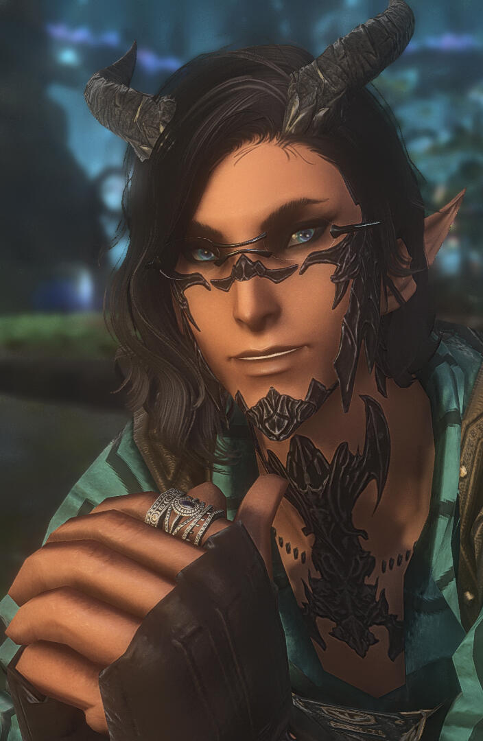 If you cannot discern fictional RP from reality, then walk on.My OCs are their own people with their own stories. While I enjoy helping people with their own OCs' progression, my guys aren't there to be disposable NPC side characters. RP is give-and-take. If you want me to help with your OCs' progression, you have to do the same for mine.If an issue arises, please communicate it to me ASAP. I can't try to fix something if I'm not made aware of it. Also make sure to let me know if you need a break, if something's not clicking or if there's something you wish to explore.I do best in one-on-one/small group RP. Large gatherings tend to overwhelm me and I end up not writing at my best...or at all. During crowded events, I prefer to interact with those I'm directly RPing with in party chat, linkshells, or tells whenever possible. During art parties and other mostly-OOC events, I'll usually be OOC myself. But if you wish to RP, then please feel free to shoot me a tell and let me know!I am an avid GPoser and love taking shots of scenes with RP partners, so if you don't mind, I'll definitely be doing so (and I do use mods, but am always accepting of vanilla characters as well)!