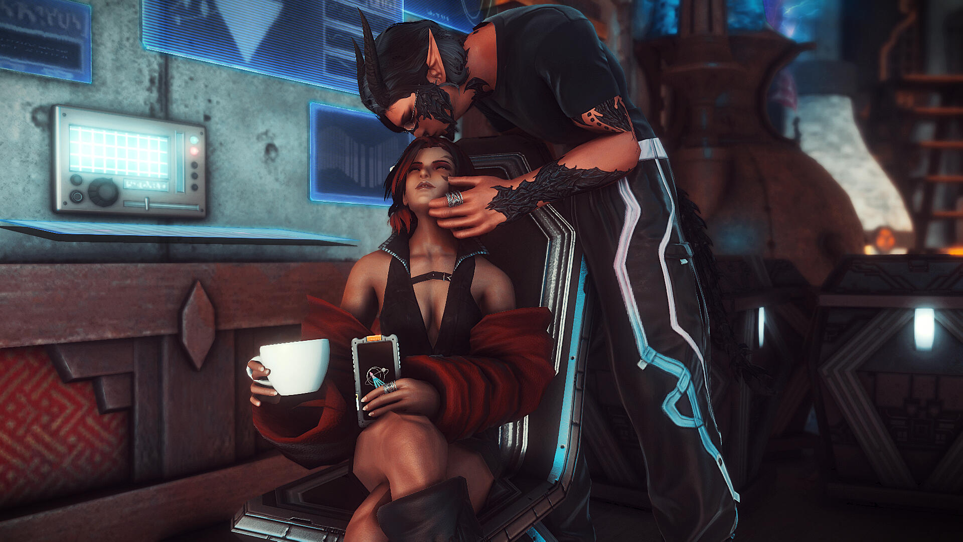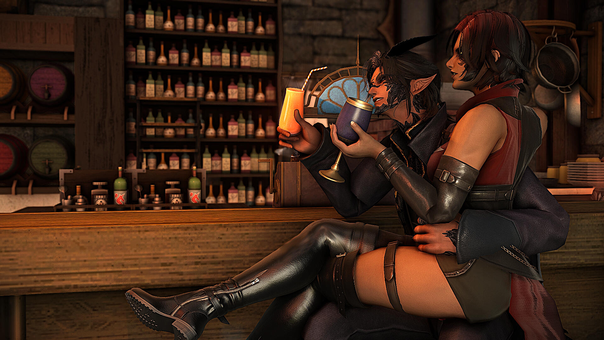 If you cannot discern fictional RP from reality, then walk on.My OCs are their own people with their own stories. While I enjoy helping people with their own OCs' progression, my guys aren't there to be disposable NPC side characters. RP is give-and-take. If you want me to help with your OCs' progression, you have to do the same for mine.If an issue arises, please communicate it to me ASAP. I can't try to fix something if I'm not made aware of it. Also make sure to let me know if you need a break, if something's not clicking or if there's something you wish to explore.I do best in one-on-one/small group RP. Large gatherings tend to overwhelm me and I end up not writing at my best...or at all. During crowded events, I prefer to interact with those I'm directly RPing with in party chat, linkshells, or tells whenever possible. During art parties and other mostly-OOC events, I'll usually be OOC myself. But if you wish to RP, then please feel free to shoot me a tell and let me know!I am an avid GPoser and love taking shots of scenes with RP partners, so if you don't mind, I'll definitely be doing so (and I do use mods, but am always accepting of vanilla characters as well)!